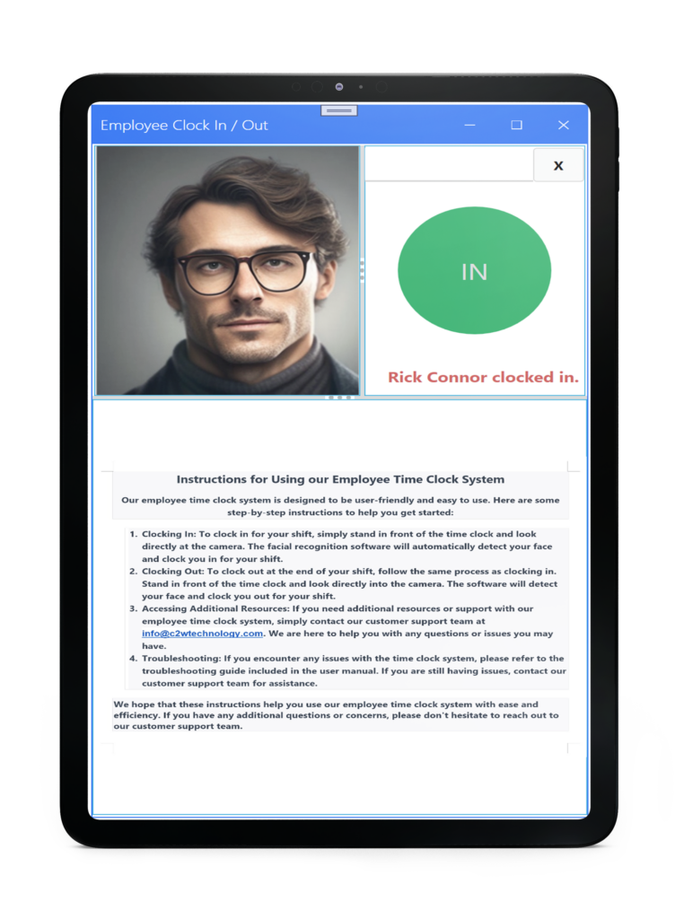 C2W Employee Time Clock is designed specifically for Windows tablets and laptops. You’ll receive a seamless and user-friendly experience for Windows users.