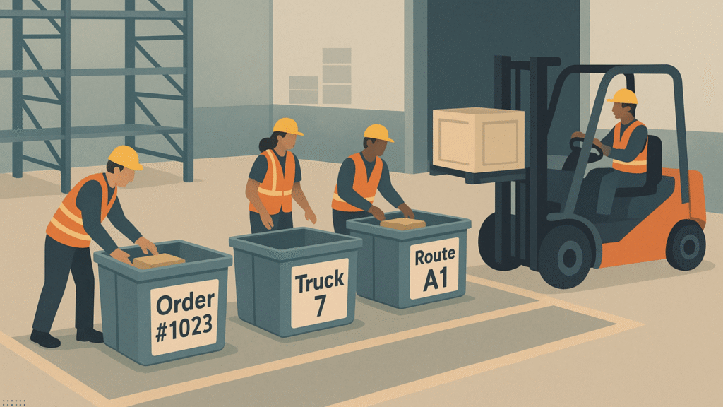 - Use floor-marked zones or shelving units based on delivery trucks or carriers.