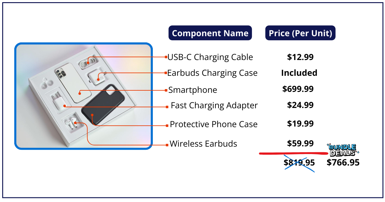 In short, a kitting and bundling strategy is a way to naturally drive customers to spend more by offering them something valuable, such as cost savings or a comprehensive all-in-one package.